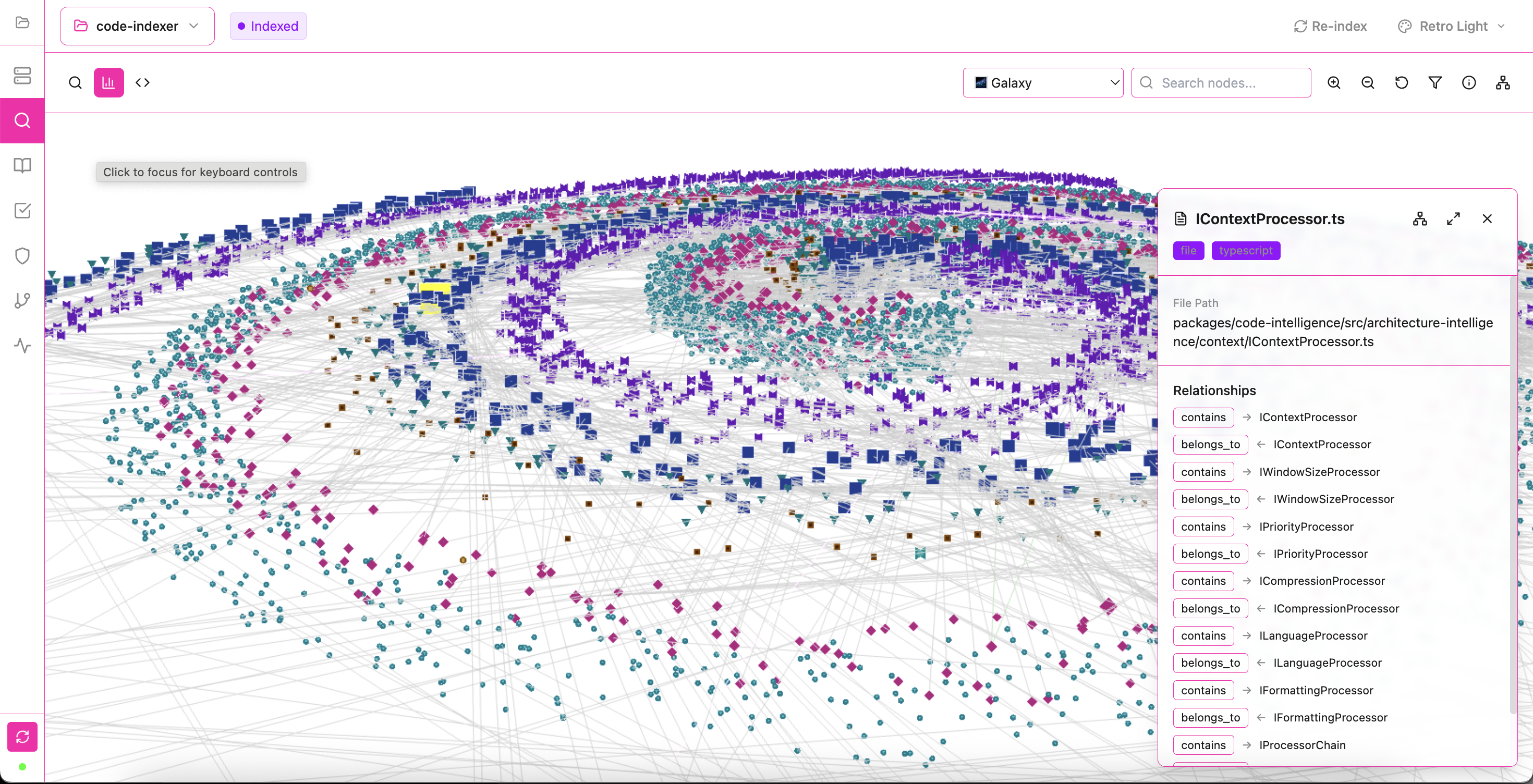 See code as interactive mind maps and 3D visualizations. Click components to explore relationships, docs, and context.